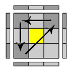 - ruota la faccia Up applicando U o U' in modo che un solo spigolo risulti in posizione corretta (gli altri tre risulteranno di conseguenza permutati).
