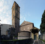 La Basilica di Sant'Agnese fuori le mura, osservata dalla facciata rivolta verso la Nomentana; l'attuale struttura risale all'epoca medioevale sulla base della chiesa della prima metà del VII secolo (Papa Onorio I) con importanti restauri eseguiti nel XVII e XIX secolo.