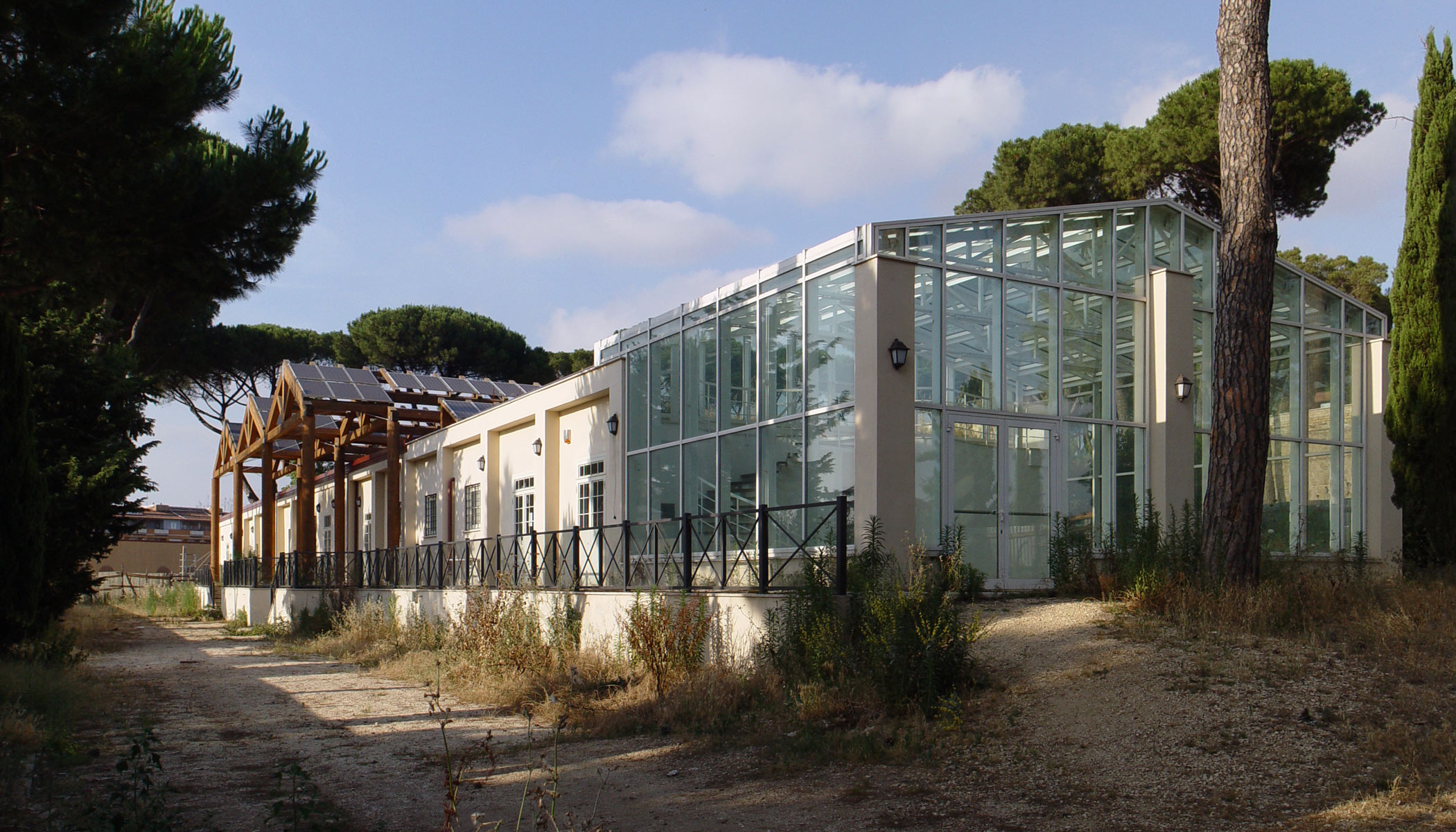 Parco ex Snia - La casa del Parco; a luglio 2011 sembrerebbe terminato, ancora indenne da tags e graffiti; rimane tuttavia chiuso dalla recinzione del cantiere; a mio avviso l'edificio è bello, di dimensioni tali da integrarsi facilmente nel resto del parco (mi pare abbia mantenuto circa la cubatura del precedente capannone industriale); degno di nota il fatto che il pino a pochi metri dal solarium sia stato risparmiato; lo stile richiama nei materiali (il vetro, il ferro) e nelle forme (il corpo di fabbrica basso e allungato, la ricerca della luce, le strutture in ferro) uno stile industriale proprio del movimento moderno e dell'international style che si svilupparono negli anni 20 e si integra bene nel contesto di un parco ex area industriale attiva proprio in quegli anni.